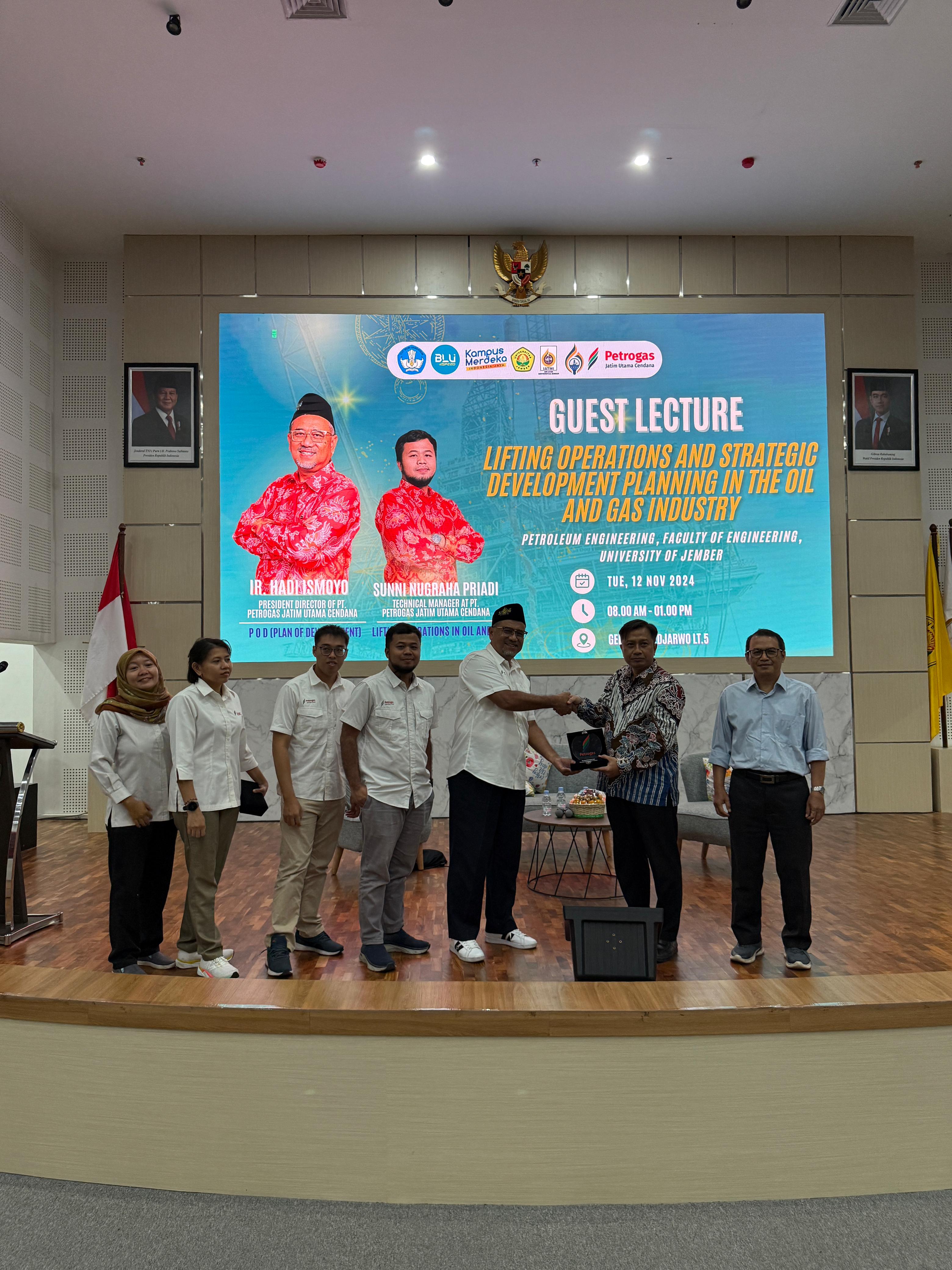 PT Petrogas Jatim Utama Cendana (PJUC) held a guest lecture at the University of Jember aimed at providing in-depth insights to students about the core operations and planning in the oil and gas industry. This event was designed to ensure that students understand the importance of sustainable production, operational efficiency, and compliance with environmental regulations, which are critical for the future of the industry.